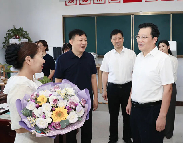 在第41个教师节来临之际,9月9日上午,县委书记丁广州走访慰问我县教育战线的优秀代表,并向他们以及全县广大教师和教育工作者致以节日祝贺与诚挚问候。丁广州指出,教育事关千家万户,事关孩子健康成长,要深入学习贯彻习近平总书记关于教育的重要论述,坚持把立德树人作为根本任务,牢记为党育人、为国育才初心使命,培养担当民族复兴大任的时代新人,努力办好人民满意教育。县领导石怀涛、李晓青参加活动。