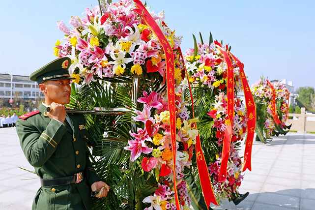 鲜花献英烈,浩气壮山河。今年是中国人民抗日战争暨世界反法西斯战争胜利80周年。9月30日是我国第十二个烈士纪念日,当天上午,沛县各界向革命烈士敬献花篮仪式在沛县烈士陵园纪念碑广场举行。县委书记丁广州,县委副书记、县长索向东,县人大常委会主任郝敬彬,县政协主席赵士鹏等县四套班子领导与社会各界代表一起,缅怀革命先烈、致敬人民英雄。索向东主持活动。