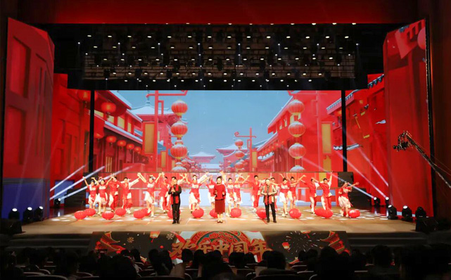 会堂内暖意融融,洋溢着喜庆祥和的节日氛围。晚会在歌舞串烧《春潮贺岁 律动新程》中拉开序幕,欢快的旋律、跃动的节奏瞬间点燃全场热情。
