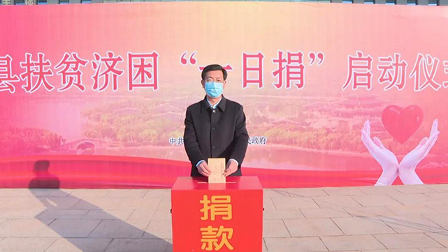 12月21日,全县扶贫济困“一日捐”启动暨县委县政府机关现场捐赠仪式在县行政中心主楼南广场举行,县委书记吴昊带头捐款。