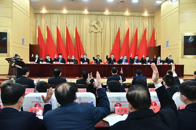 在完成各项议程后,中国共产党沛县第十五届委员会第二次全体会议在国际歌声中胜利闭幕。